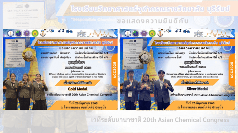 ขอแสดงความยินดี กับนักเรียนและครูที่ปรึกษาโครงงาน ได้รับรางวัล Silver Medal และ Gold Medal จากการเข้าร่วมนำเสนอผลงานระดับนานาชาติเวที 20th Asian Chemical Congress (ACC2025) 28 มิถุนายน 2025 Read More »