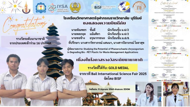 ขอแสดงความยินดี กับนักเรียนและครูที่ปรึกษษโครงงานที่ได้รับรางวัลนานาชาติ GOLD MEDAL การแข่งขันจากเวที Bail International Science Fair จัดโดย Indonesian Young Scientist Association 20 มิถุนายน 2025 Read More »