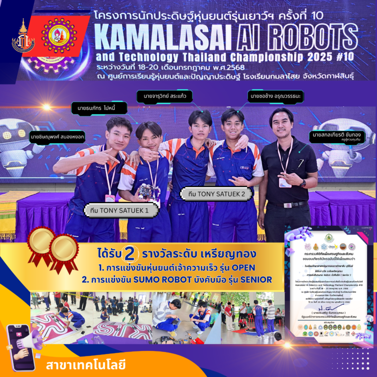 ขอแสดงความยินดีกับ นักเรียนทั้ง 2 ทีม ที่ได้รับรางวัลการแข่งขันหุ่นยนต์ ระดับเหรียญทอง การแข่งขันโครงการนักประดิษฐ์หุ่นยนต์รุ่นเยาว์ – KAIR การแข่งขันสิ่งประดิษฐ์ หุ่นยนต์ ปัญญาประดิษฐ์และเทคโนโลยี (Kamalasai AI Robotics and Technology Thailand championship 2025 #10) 24 กรกฎาคม 2025 Read More »