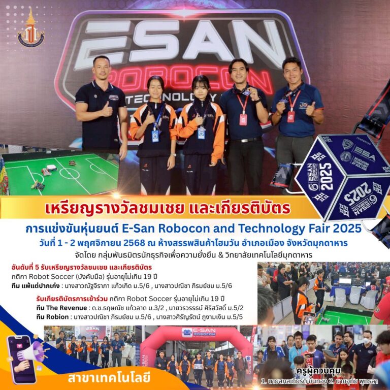 ขอแสดงความยินดีกับนักเรียนและครูที่ปรึกษา ในโอกาสได้รับรางวัลและเกียรติบัตร การแข่งขันหุ่นยนต์ E-San Robocon and Technology Fair 2025 6 พฤศจิกายน 2025 Read More »